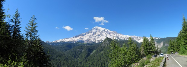 At Yakima we take the Yakima Greenway / Naches Trail. This trail leads us to Naches were we take the Odl Naches Highway to the start of highway 410. We climb about 800 m. to the Little Naches campground within the Wenatchee National Forest. The next day we climb another 880 m. (for about 38 km) to the top of the Chinook Pass (5430 ft). Here we enter the Mount Rainier National Park. After this we have a nice long downhill to The Dalles campground. Then we have the last day of cycling; a long (about 70 km) descent into Seattle. At Bonney Lake Bicycle Shop of Sumner we get some bicycle boxes for packing our bike for the flight back home. After almost 2200 km and 4 weeks of cycling our holiday has finished. We relax a few days around Seattle before flying home to the Netherlands. Is has been a very nice and enjoyable cycling trip!